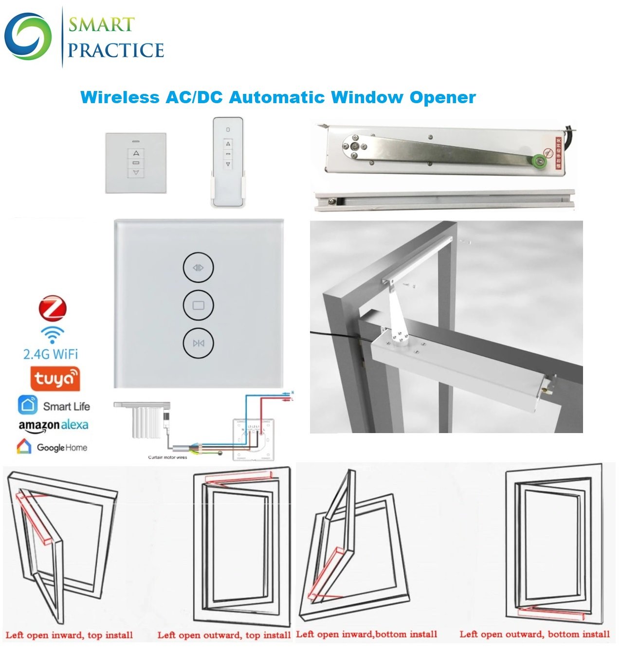 Zigbee Wifi AC DC Automatic Casement Opener Close open Window Outward Inward Tuya Window Driver 433Mhz Remote Control